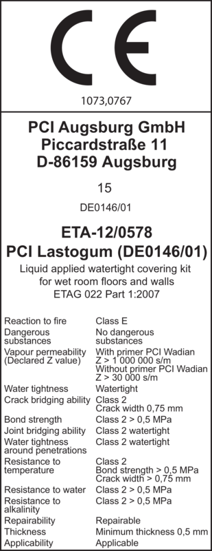 - Kan även användas för att limma tätskiktsduken PCI Pecilastic W Project, se våtrumssystemet PCI VG2013.